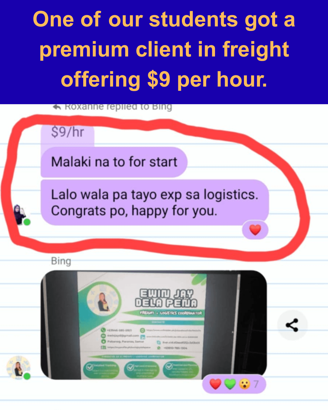 ✅ This challenge will give you the skills and confidence to start applying for Freight VA opportunities. While landing a client depends on your effort and applications, you’ll walk away with knowledge that can help you stand out from other applicants.